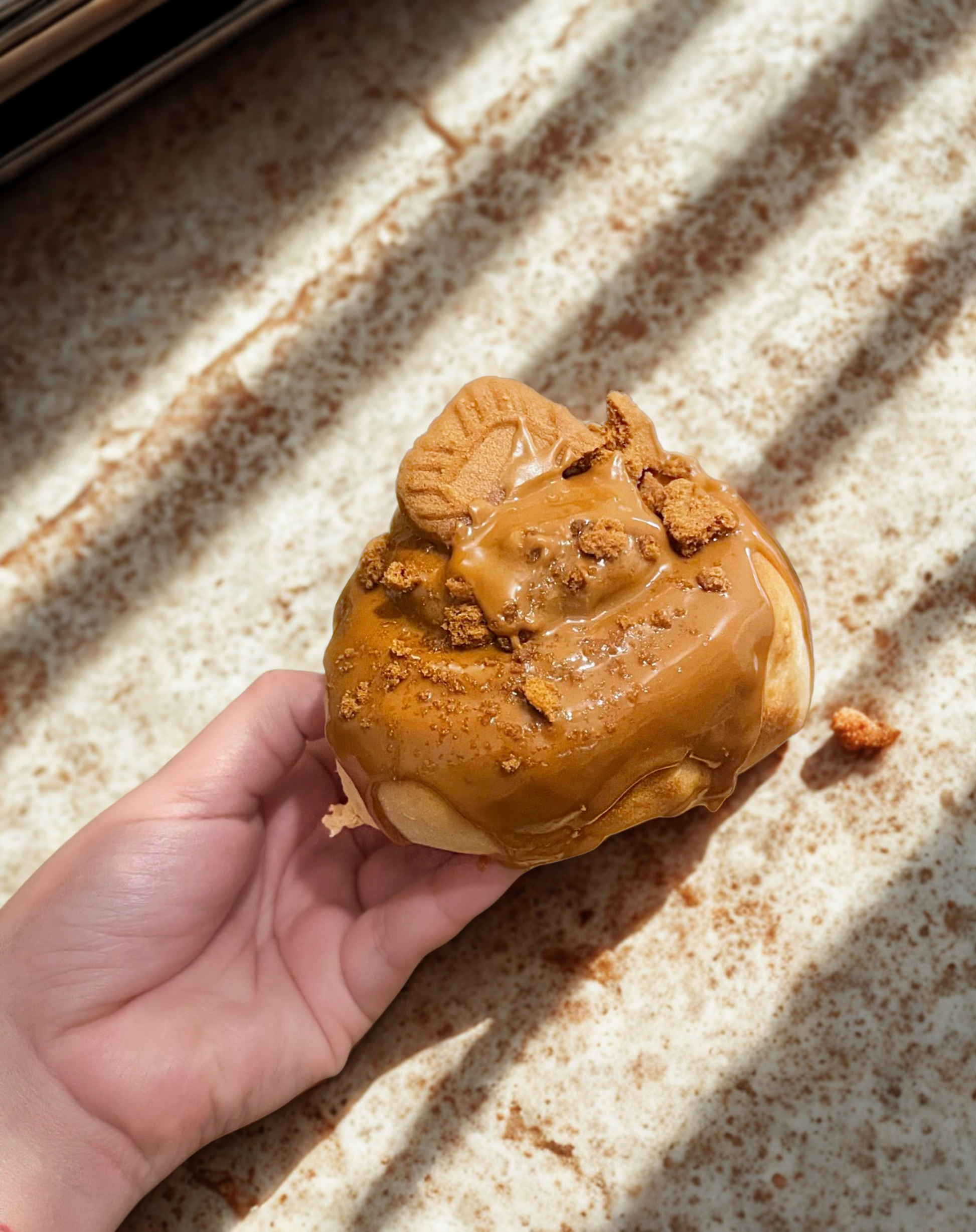 Individual rollare layered with warm cinnamon, creamy Lotus spread, and a caramelized cookie crumble that melts in every bite.